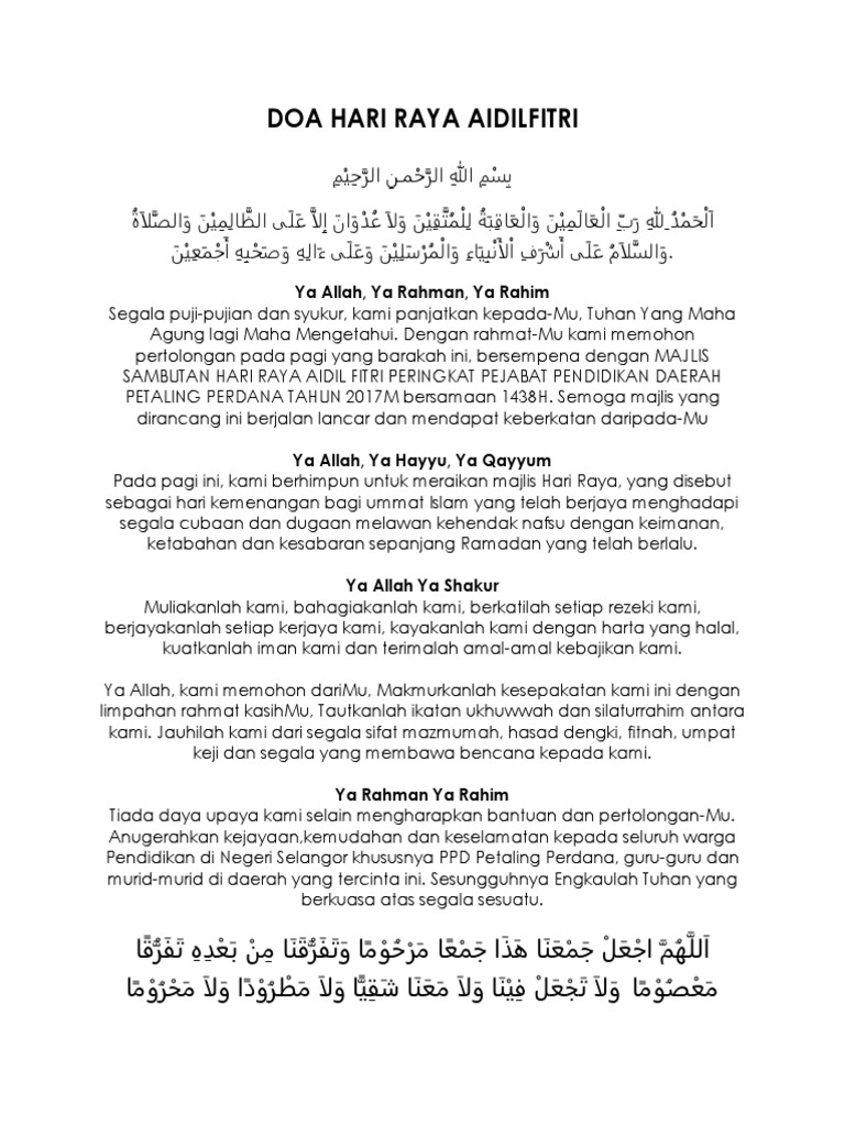 Doa hari raya aidilfitri aidiladha 20 17. Para hadirin yang dihormati sekalian atur cara majlis diteruskan lagi dengan jamuan Hari Raya Aidilfitri. Pada tahun ini pihak sekolah melalui Kelab Guru SK Kampung Chabang.